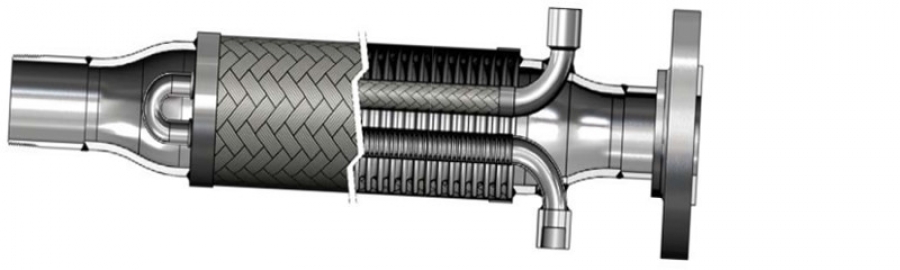 Прослеживаемые узлы в принципе аналогичны узлам в рубашке тем, что имеется внутренний шланг меньшего диаметра, заключенный в один шланг большого диаметра. В тех случаях, когда сборки в рубашке окружают среду теплом или холодом, прослеживаемые сборки имеют среду вокруг шланга, содержащего нагревательный или охлаждающий элемент. Измеритель или внутренний шланг также может быть установлен в виде длинной U-образной петли внутри внешнего шланга с входным и выходным отверстиями для пара на одном конце узла.
